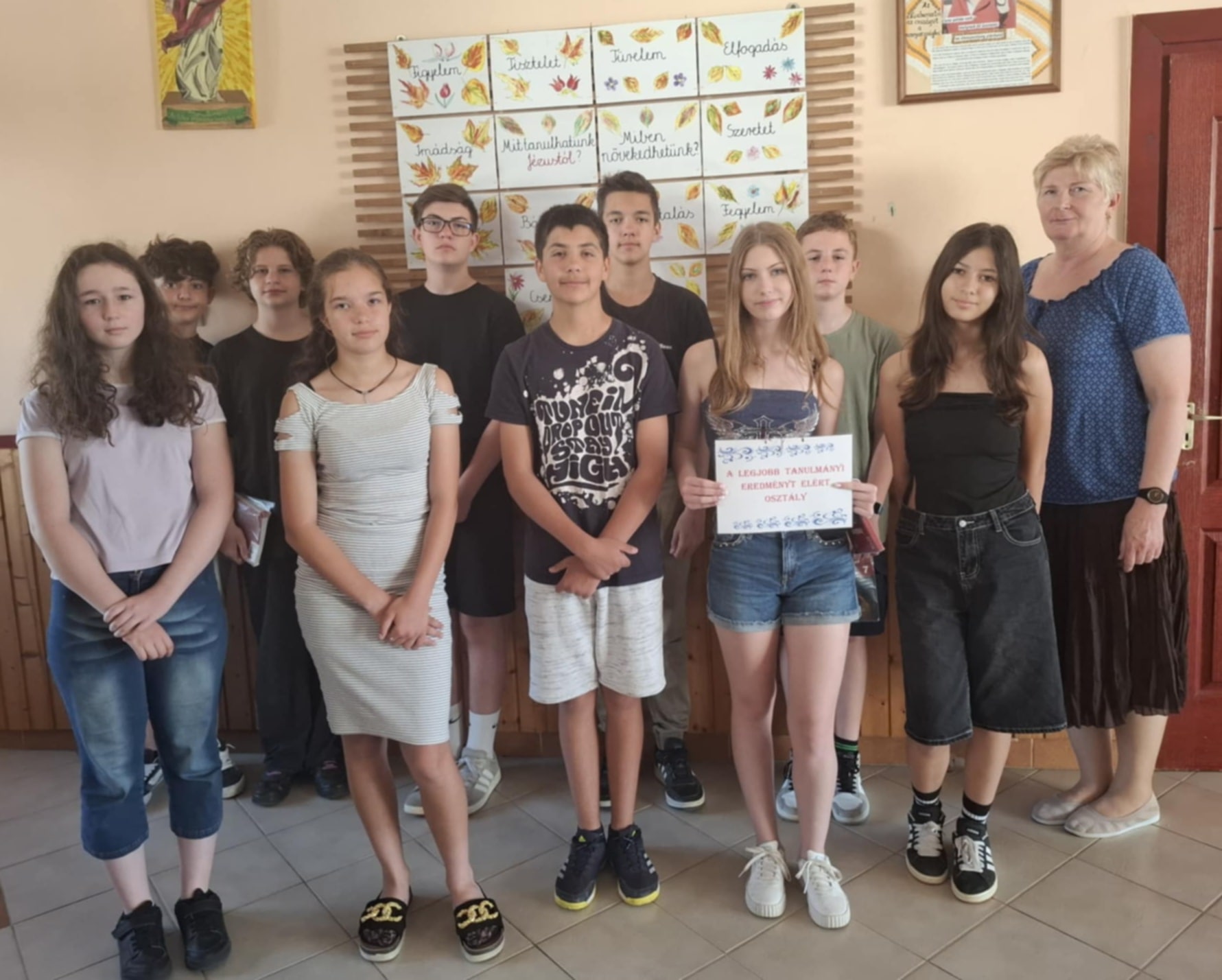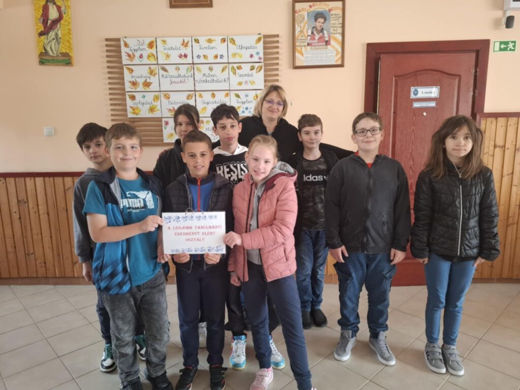 „A LEGJOBB TANULMÁNYI EREDMÉNYT ELÉRT OSZTÁLY” elismerő tábla.