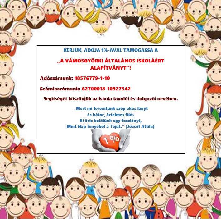 Ezúton is köszönetünket fejezi ki „A Vámosgyörki Általános Iskoláért Alapítvány” kuratóriuma, az iskola dolgozói és tanulói nevében mindazoknak, akik tevékenységünket támogatásukkal segítik.