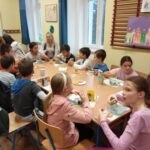 Iskolánkban hagyománnyá vált az angol tea parti. A tanév első felében a felső tagozatosoknak szervezzük ezt a programot. Ez alkalommal, egy távoli országba és kontinensre látogattunk el: Ausztráliába. Mint mindig, a gyerekek most is lelkesen készültek rövid előadásokkal, bemutatókkal, amelyekkel a játékos vetélkedő feladatai között egymást szórakoztatták. A tea és keksz mellett megkóstolhattuk az ausztrálok nemzeti desszertjét, a kókuszkockát vagy ahogy ők hívják a ’lamingtont’. Rendezvényünk az Iskola Alapítványának támogatásával valósult meg.